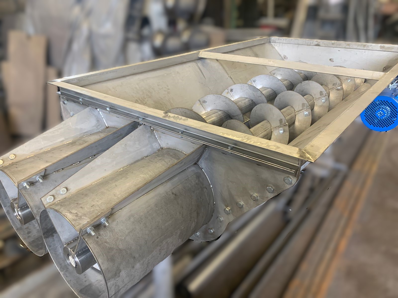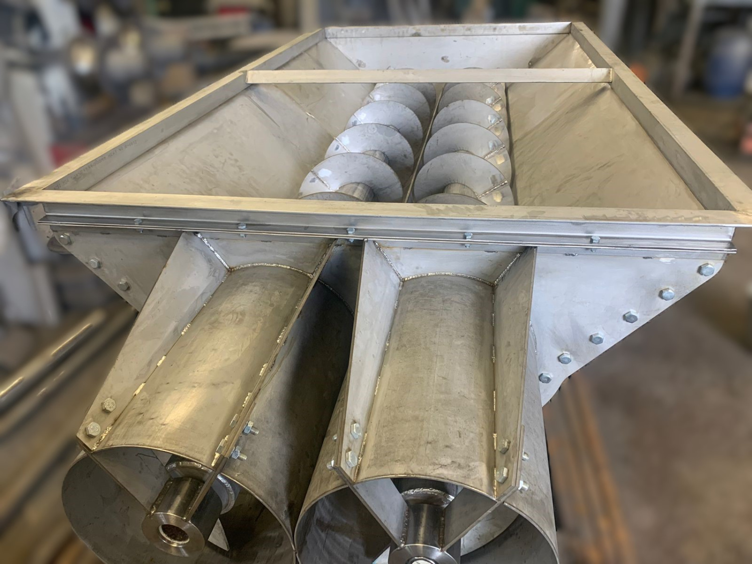 В апреле 2024 года от московской компании поступил запрос на разработку и изготовление спаренного шнекового спирального транспортера для перемещения жировых продуктов. Учитывая органическую природу перемещаемого продукта, материалом для изготовления транспортера был выбран нержавеющий металл.